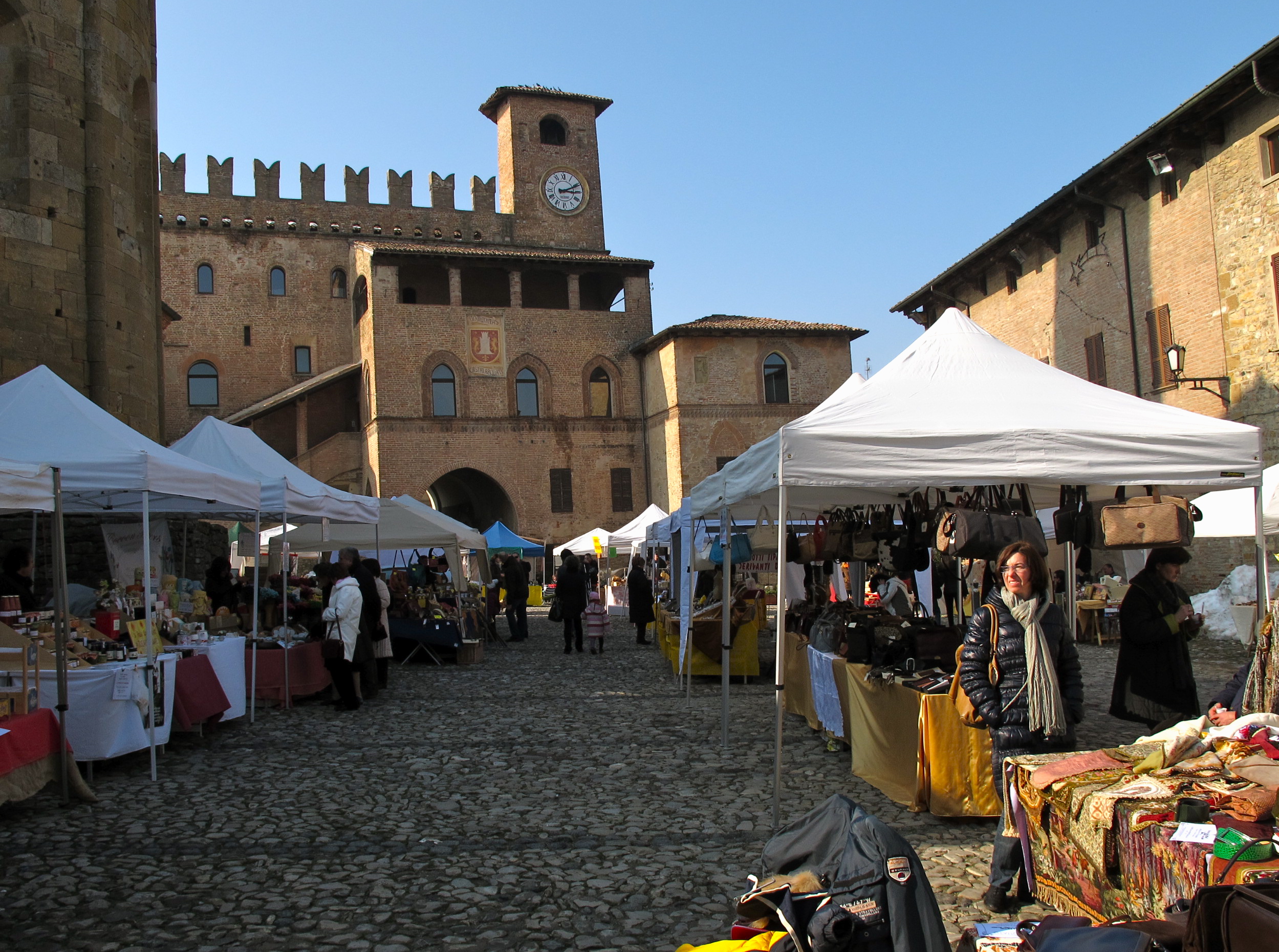 Oggi domenica 14 marzo a Castell’Arquato, verso le 15,30, c’era tanta gente nella piazza monumentale per curiosare tra bancarelle di antiquariato e produttori biologici.