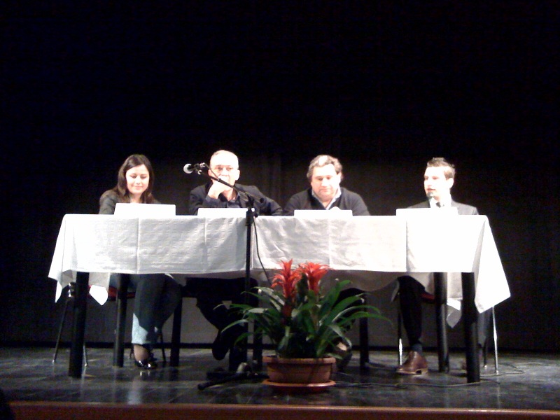 Sul palco Il Sindaco Jonathan Papamarenghi, L’assessore Valeria Tedaldi e il moderatore don Roberto Tagliaferri, tra loro Gianluca Nicoletti, il relatore della serata.