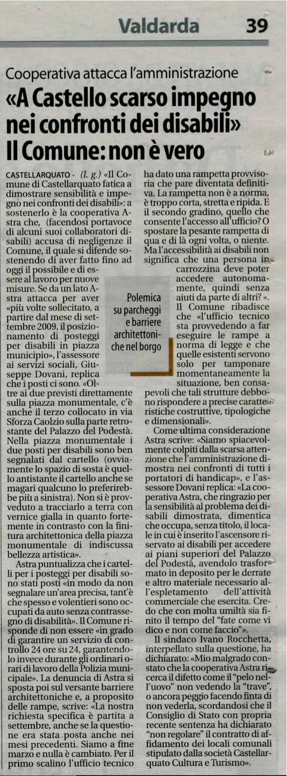 2- i disabili sono una questione importante…molto…ma anche far ‘sta figura davanti al mondo ( noi a castello siamo specialisti in ” figure”) per questioni che il comune..l’istituzione C O M U N E, dichiara di aver ben presente, che si tratterebbe di semplici ritardi ma che tutto sta procedendo….!!!