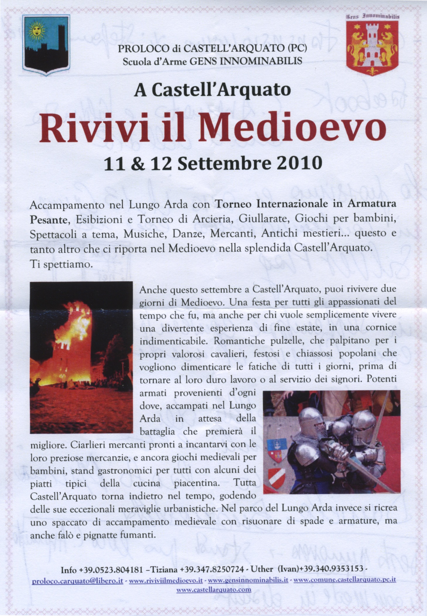 Come tradizione vuole in Settembre, sabato 11 e domenica 12, Castell’ arquato rivive il suo medioevo!