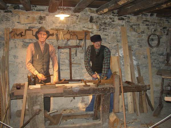 In tutto il paese…in tutto… sono stati utilizzati spazi aperti e chiusi suggestivi e realizzate semplici scenografie riproducenti momenti di vita quotidiana antica…la veglia nella stalla ( il filöss), la bottega del falegname, la stalla, la vita nel cortile, la scuola, l’osteria…..
