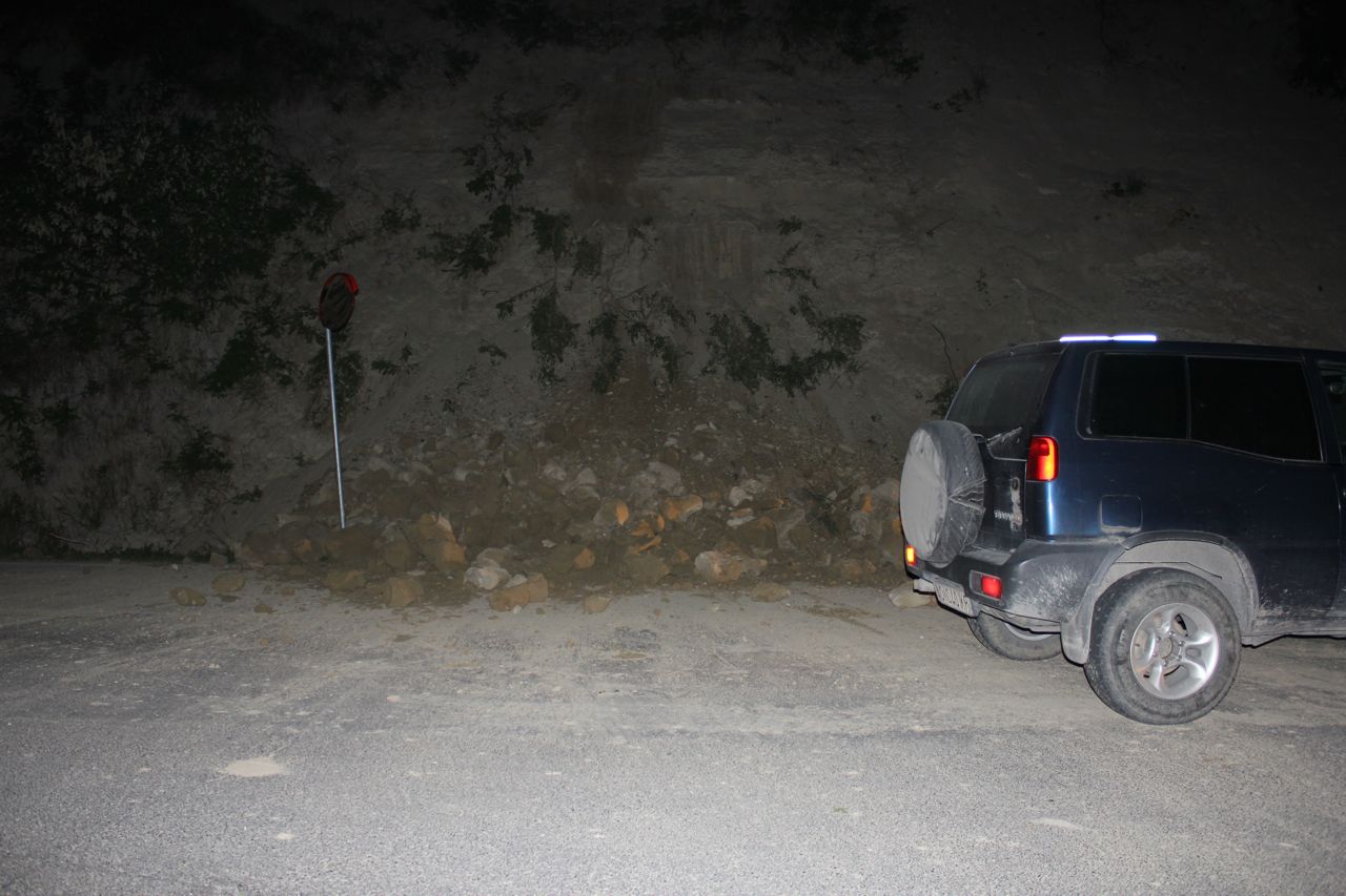 Una frana si era staccata dalla parete, alta circa 20 metri e molto scoscesa, che sovrasta la strada e aveva invaso l’intera carreggiata.