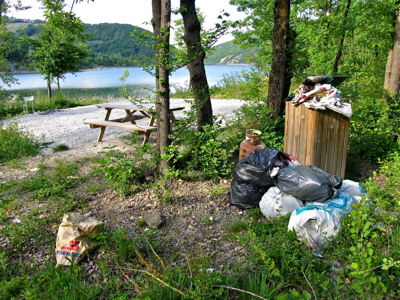 Oggi era una bella giornata ma alla fine ……che dolore dover constatare che gli uomini di fronte a certi spettacoli della natura fanno spallucce, lasciano due lattine di birra vuote sull’argine che li ha ospitati pescando tutto il giorno, un pacchetto di marlboro classiche, diversi mozziconi e carta, sacchetti ecc….