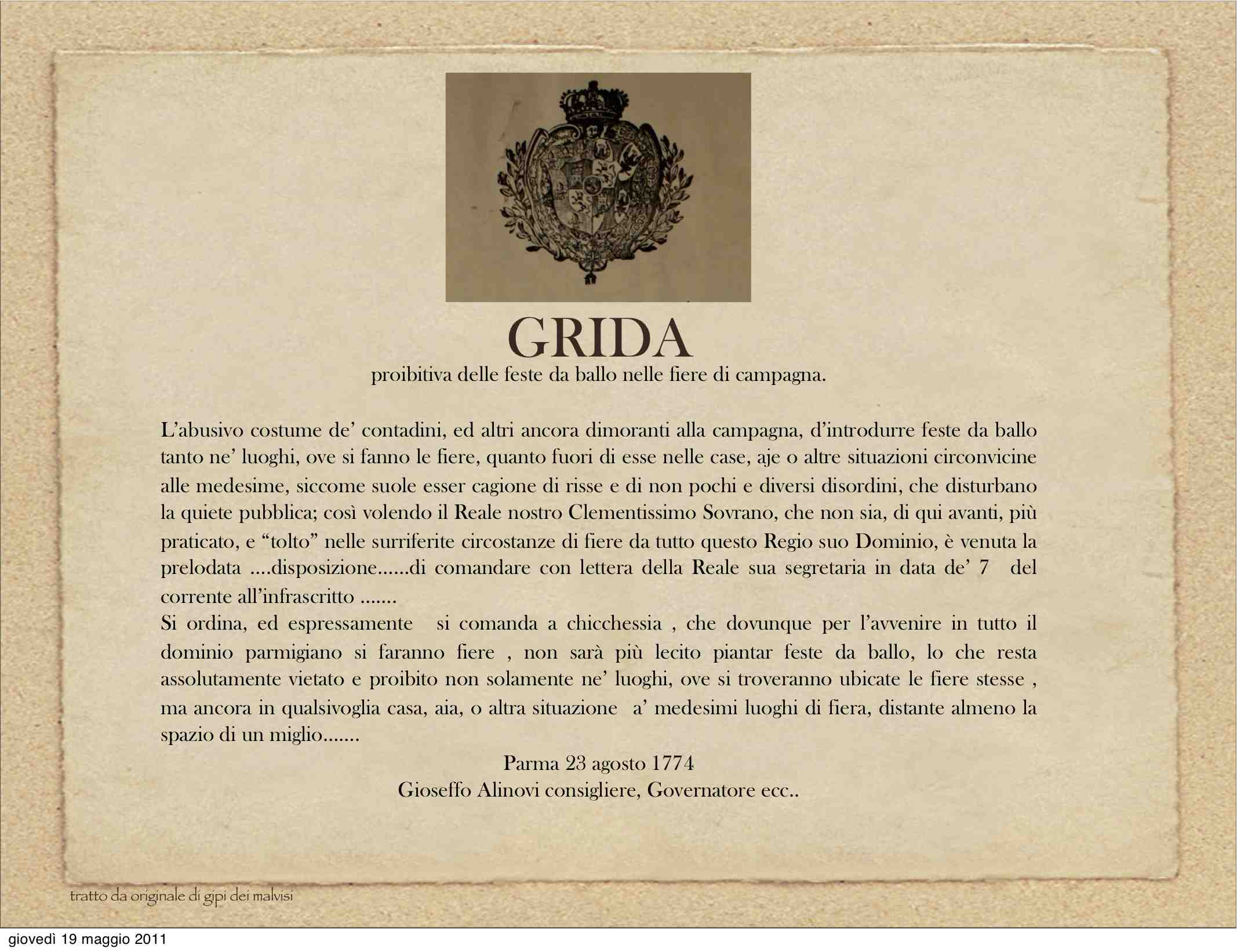Proprio le proibizioni degli ottusi regnanti del “ducato” che nulla avevano ancora dato alle popolazioni del contado e delle nostre miserande campagne finì con il favorire musiche, balli e canti eccellenti.