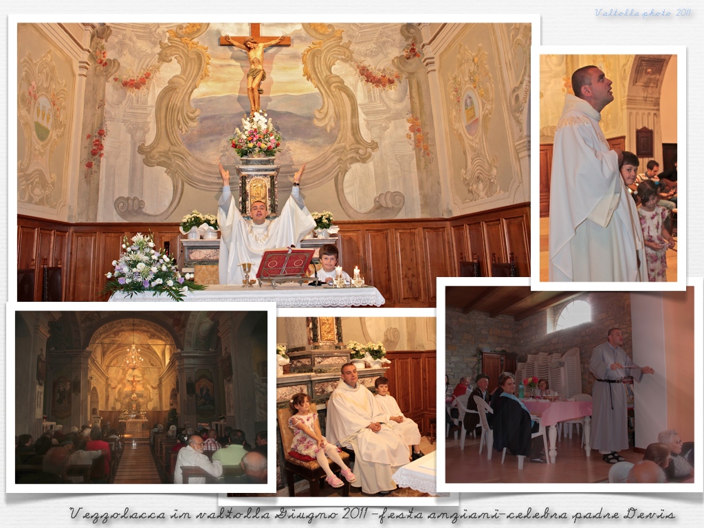 Tanti anziani accompagnati dai figli, dai nipoti e dagli amici alle 11 si sono dati appuntamento a Vezzolacca valtolla [il luogo che google maps si ostina a definire “Poggio ….di Vernasca”] per partecipare alla S.Messa che, per l’occasione, era celebrata da padre Devis [eremita presso l’eremo di Montezago in comune di Lugagnano…..praticamente nel versante Valchero della Valtolla].