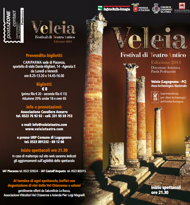 Torna nello splendido scenario di Veleia il festival del teatro antico. Cinque appuntamenti-eventi con la cultura classica e con i grandi interpreti del teatro italiano, l’appuntamento tra i più prestigiosi della nostra provincia.