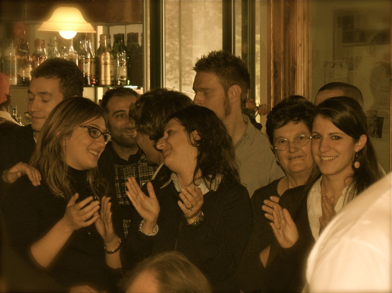 je viens me promener et voir les photos de cette fameuse fête!! tout le monde m’a l’air bien, les petites bouteilles par ci, les parts de gâteaux par là, les sourires aux lèvres… un bon moment de partage, de joie…