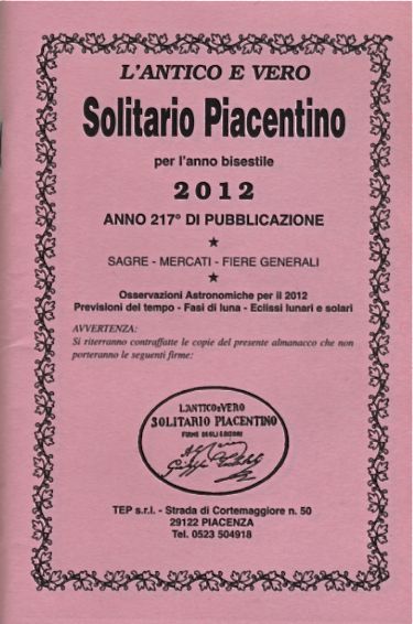 Anche quest’anno è in distribuzione nelle edicole piacentine “l’antico e vero Solitario Piacentino” per l’anno 2012 (anno bisestile).