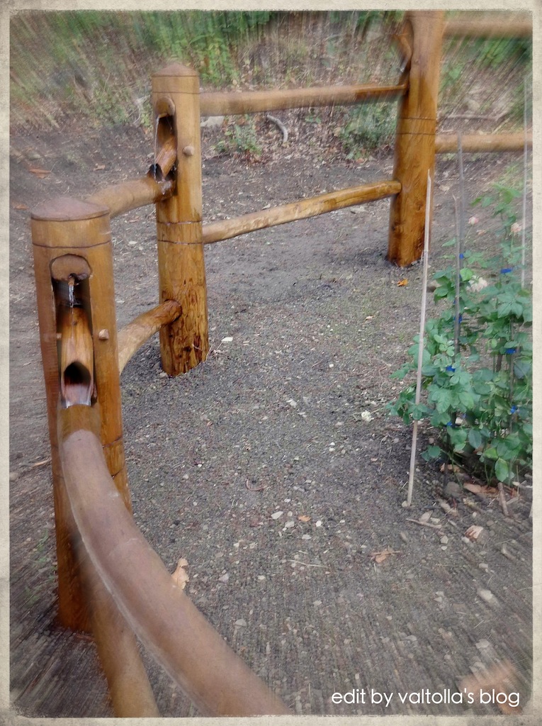 Nando ha preparato un “contorno” fatto di legno cavo, percorso dall’acqua, che irradiava una musica rilassante, oserei dire “il canto dell’acqua nei boschi di castagno” e ha anche preparato l’altare in castagno con un bel crocefisso scolpito.