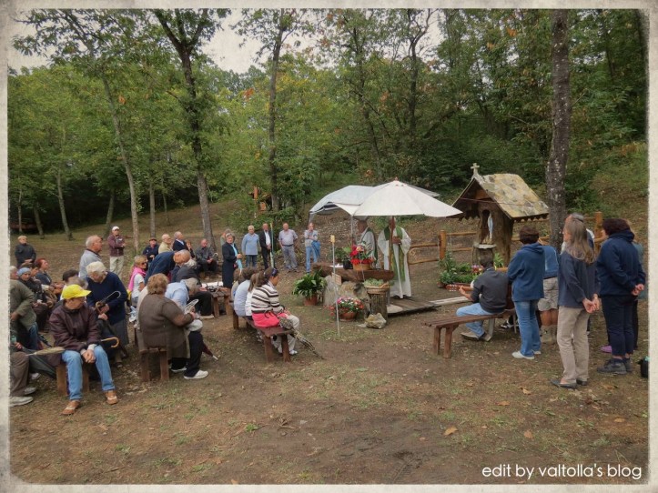 «Caro Sergio,….ti allego alcune foto della messa nel bosco, presso la cappelletta…lo scorso 2 settembre. Nonostante la giornata fredda e con il rischio di pioggia c’era molta gente.