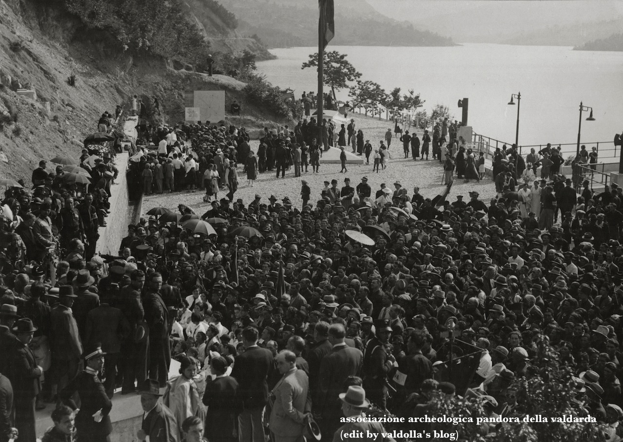 1. Bellissimi ricordi ! Nell’ultima foto (discorsi ufficiali col lago pieno), in basso a sx quello con gli occhiali, le mani sui fianchi ed il volto girato appositamente verso l’obiettivo ho quasi la certezza si tratti di mio Padre che nel 34′ aveva 25 anni.