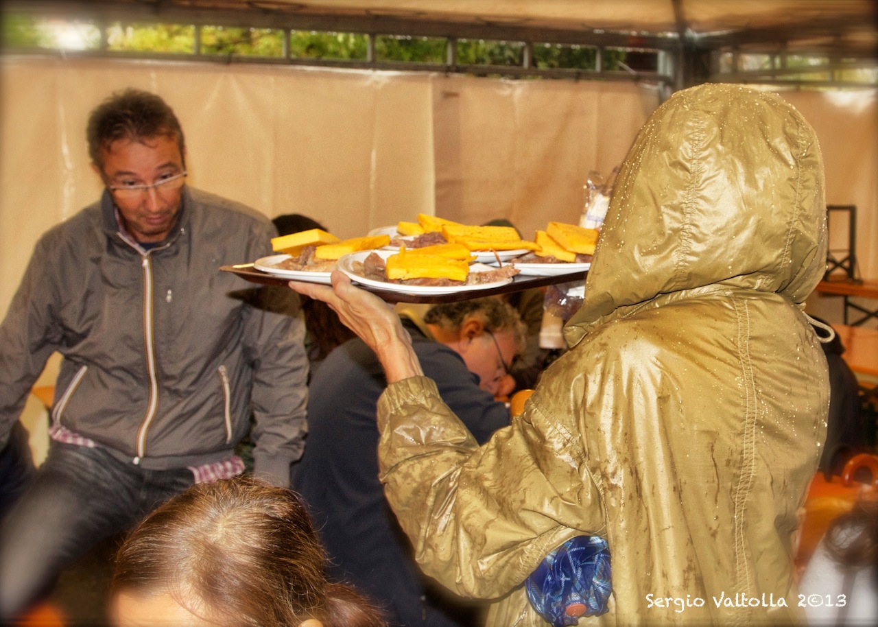 E così verso mezzogiorno c’era il “capannone” pieno di gente che attendeva di potersi accomodare per gustare un piatto di maiale cotto nella buca…alla “sardo-vezzolacchina” e tutto il resto a cominciare dalle castagne.