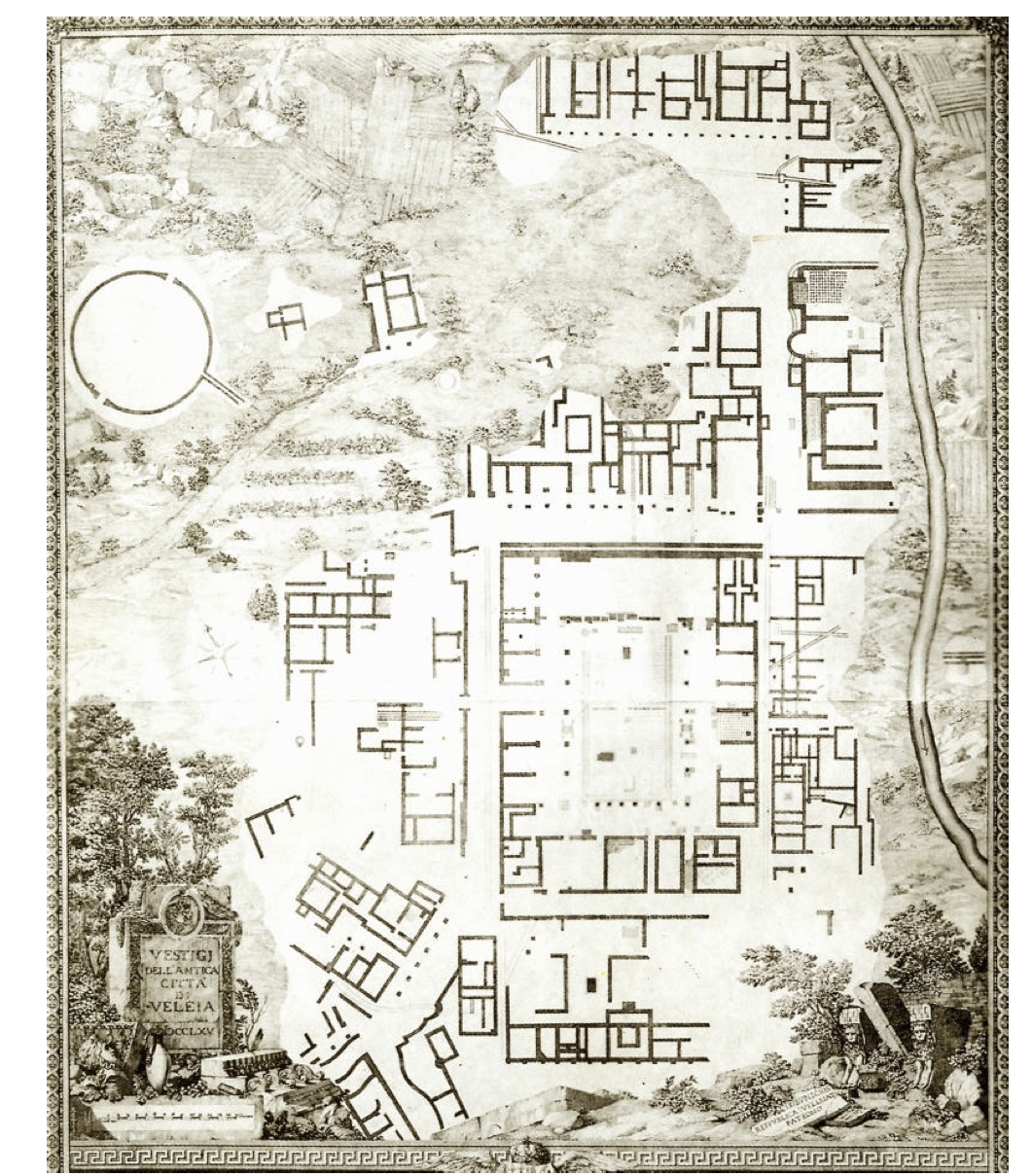 Uno dei massimi esperti del sito archeologico, il prof. Criniti, afferma che la vasta frana degradante da sud verso nord, su cui il centro di Veleia era collocato aveva costretto e permesso ai Romani di operare i terrazzamenti necessari per le infrastrutture fondamentali. La successiva mancata manutenzione, e lo scarso controllo di tale “movimento” fu, in seguito, la causa primaria della decadenza e della sua definitiva eclissi, fino alla riscoperta del 1747.