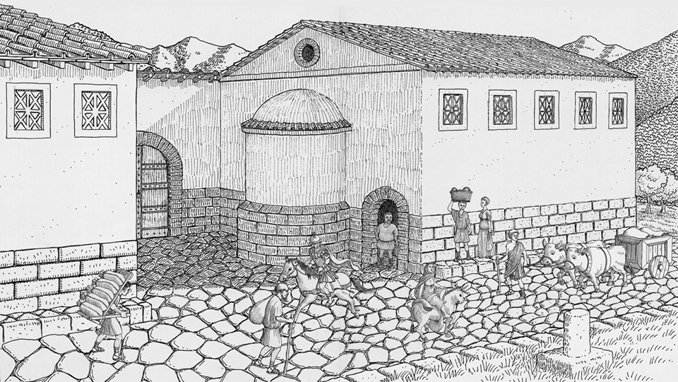 (1)mutatio: Molto simile alla mansio era la mutatio, la cui funzione, in età imperiale, consisteva esclusivamente nel fornire animali di ricambio ai messi o ai veicoli (i corrieri) che viaggiavano per interessi di stato o autorizzati da esso. Il diritto di disporre di animali pubblici e fornirsi di rifornimenti era ottenuto mediante l’esibizione di un atto scritto. Una specie di passaporto dove venivano annotate destinazione e motivazione del viaggio. La stazione poteva essere gestita da un gruppo di coloni o da ex legionari.