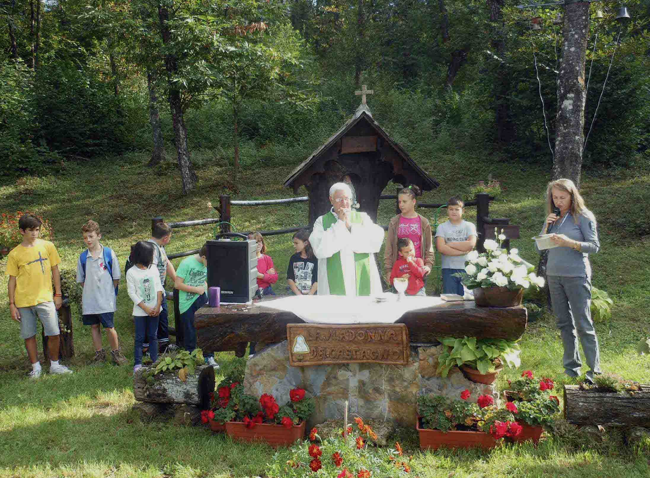Domenica scorsa 21 settembre alle ore 16, all’inizio del bosco, dove i castagni sono già in bella mostra, tanta gente si è stretta attorno alla Madonna la cui statua è stata posta nel vecchio tronco di un castagno secolare che il caro Nando, bravissimo artigiano del legno, con i suoi amici, avevano recuperato e piazzato in quel posto al lato della strada della boscaglia. Una Madonnina tra i castagneti, a protezione della risorsa che per secoli ha garantito vita, cibo e un piccolo reddito ai vezzolacchini. La “Madonna delle castagne”.