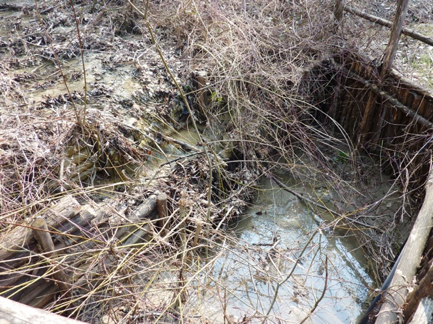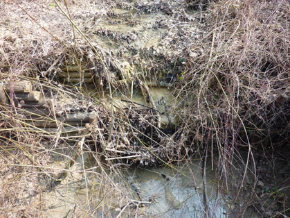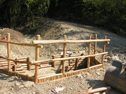 Le foto che seguono sono molto eloquenti… si tratta di un piccola briglia in legno di castagno e pietra locale, posta a monte di un tombino stradale.