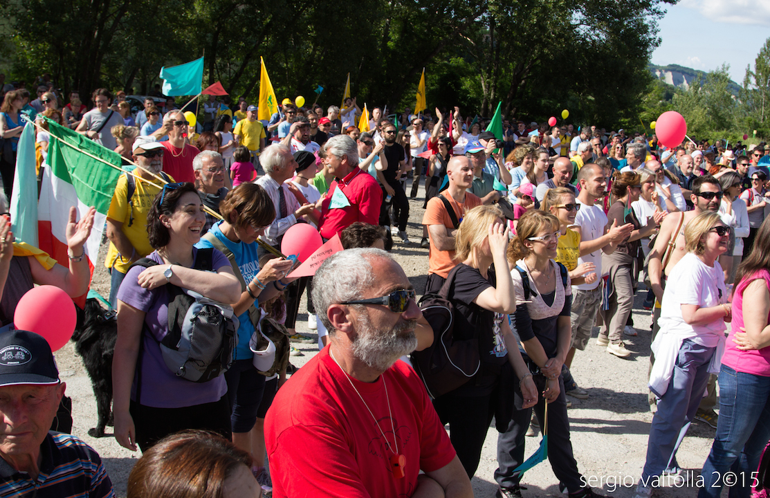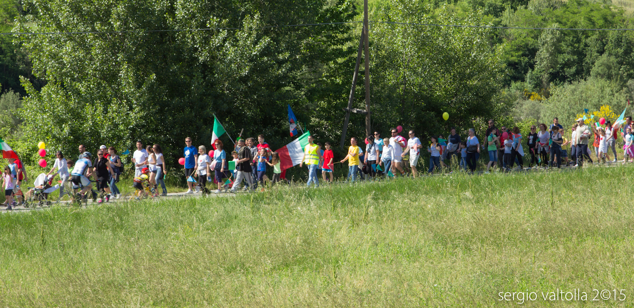 C’erano tanti bambini con relative maestre e insegnanti, c’erano intere famiglie e un piccolo “cucciolo umano” di nome Marcello nel marsupio di papà, c’erano gli agricoltori con trattori e bandiere, c’erano gli alpini, c’erano tantissimi, veramente tantissimi, giovani. Tutti molto colorati con magliette, bandiere, palloncini e tanti fischietti.