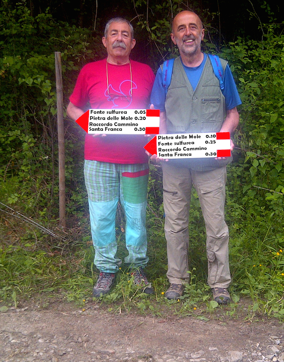 Ma gli esperti sentierologi, Furio Ovali, Franco Sorenti e Silvano Obertelli, dell’associazione “Via dei Monasteri Regi”, unitamente a noi autori del volume “Il Cammino di Santa Franca” (autori anche del presente post) non si sono accontentati di tracciare la Via, apporre segnali lungo il Cammino medesimo evidenziando le fontane dedicate alla Santa o segnalare la vicinanza di un paese e di una contrada. Sono andati oltre…