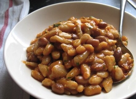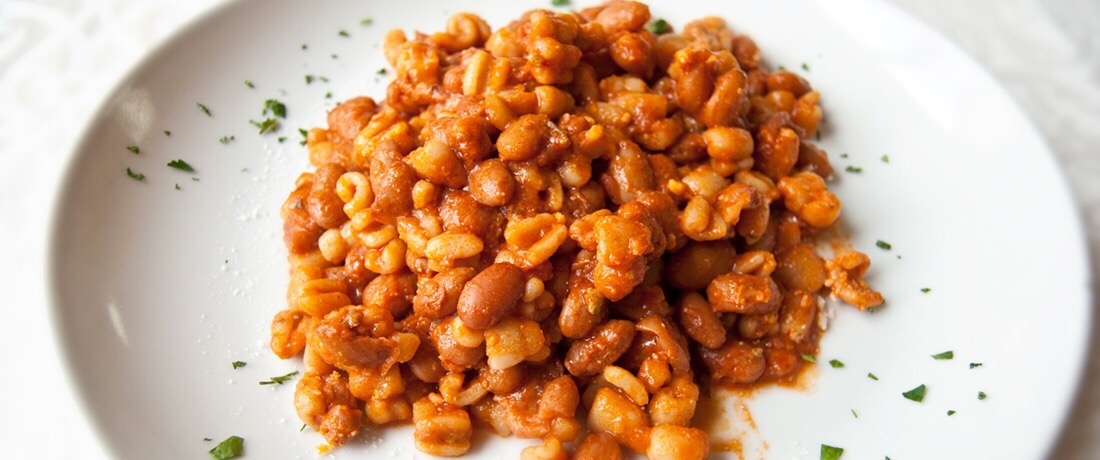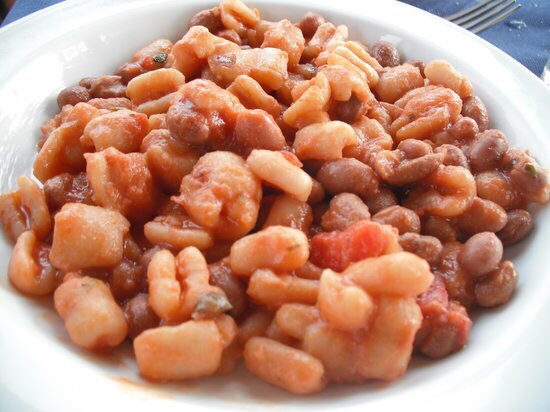 Suppongo che la preparazione originale, prima dell’arrivo dei borlotti e pomidoro dal Sud America, prevedesse i nostri buoni e antichi fagioli italici, del genere Dolichos, tra cui “quello con l’occhio”, utilizzati dai “Romani”.