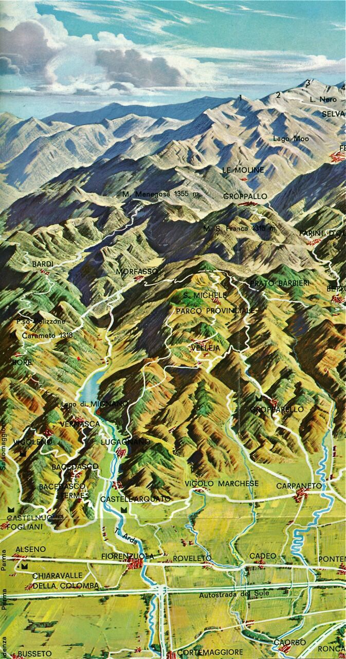 Ma tu cara Valdarda che sei ancora bella, potresti essere bellissima con quel Castello splendido, con quei calanchi del Piacenziano…e quei monti come il Moria; per non parlare dei monti del crinale come il Lama e il “dolomitico” Menegosa, della vitivinicoltura collinare di alta qualità e di tanti monumenti…e cose del genere che ti danno lustro.