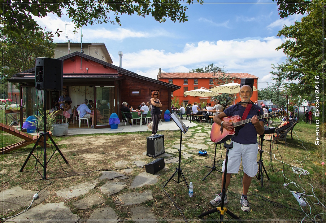 E gironzolando nei dintorni non si poteva non notare che le numerose case dei villeggianti erano aperte, che alcuni di questi erano con noi alla Lumaca a gustarsi la bella iniziativa, allietata come si accennava da Masimo Boeri che con la sua chitarra ci ha accompagnati alla riscoperta della canzone d’autore italiana.