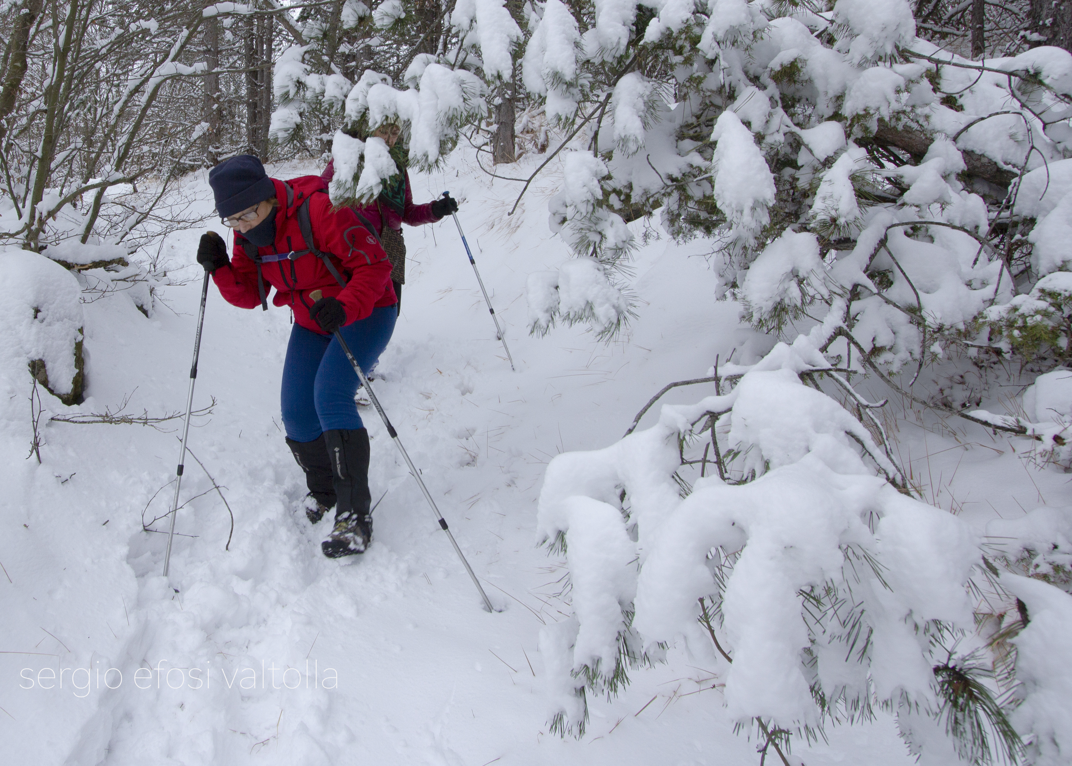 Pensavamo fosse necessario indossare le ciaspole e invece no, pensavamo di dover superare chissà quali difficoltà e invece ne è nata una gran bella escursione sulla neve fresca, caduta lieve nella notte precedente.