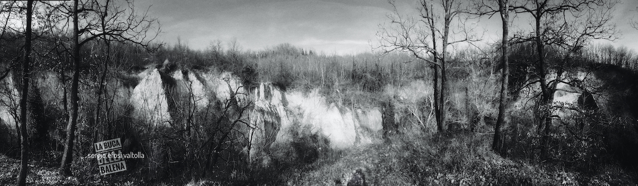 Nella “Buca” sono ben visibili le antiche stratigrafie delimitanti terra, sabbie gialle e quelle parti più chiare, quasi bianche, che indicano la forte presenza di resti fossilizzati dell’antico “Golfo Padano”.