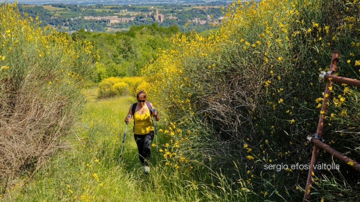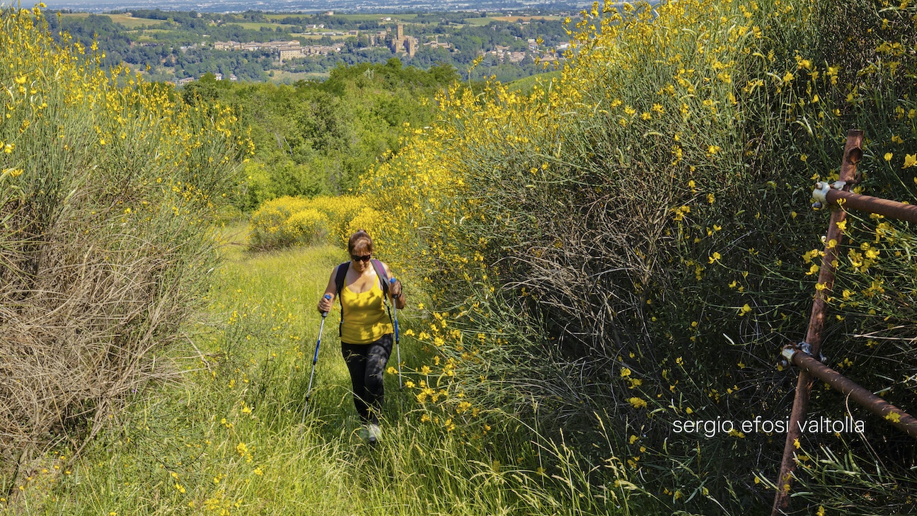 Vista dall’alto dell’inizio del tratto del sentiero della Ciocca di Castell’Arquato, segnalato in questo articolo.Particolare e bello lo scenario che si gode camminando a “La Ciocca”, nella stagione primaverile con le ginestre in fiore. Luoghi protetti della “Riserva del Piacenziano” dove furono recuperati numerosi reperti scheletrici di una balenottera custodita nel pregiato museo geologico “Cortesi” (link)di Castell’Arquato…