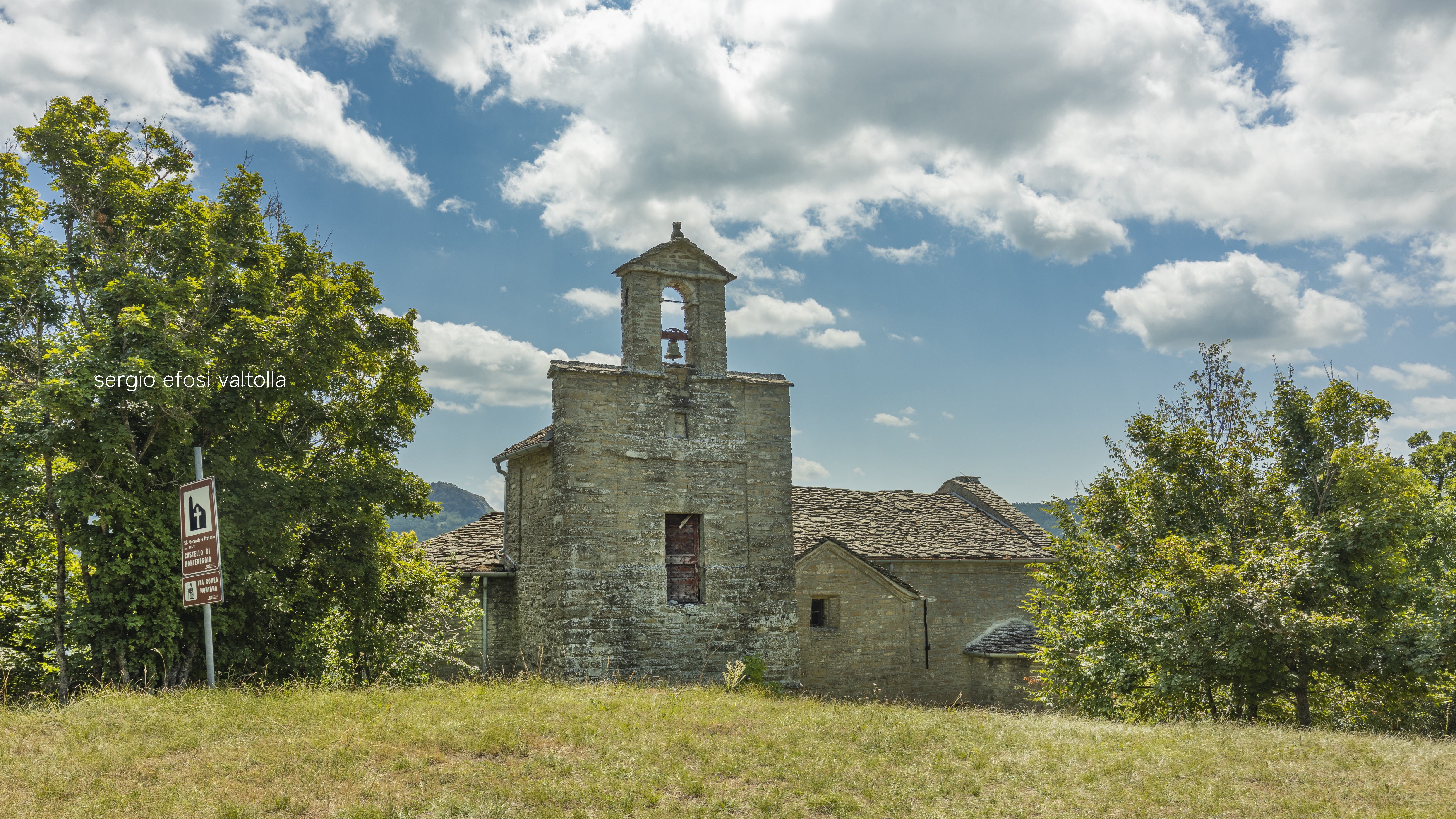 Sulla cima di quel monte è stata realizzata una chiesa di pietra, una chiesa antica dedicata in origine ai SS. Protasio e Gervasio e più recentemente a Sant’Anna, bisognosa di grandi cure materiali che solo parzialmente le sono state donate.