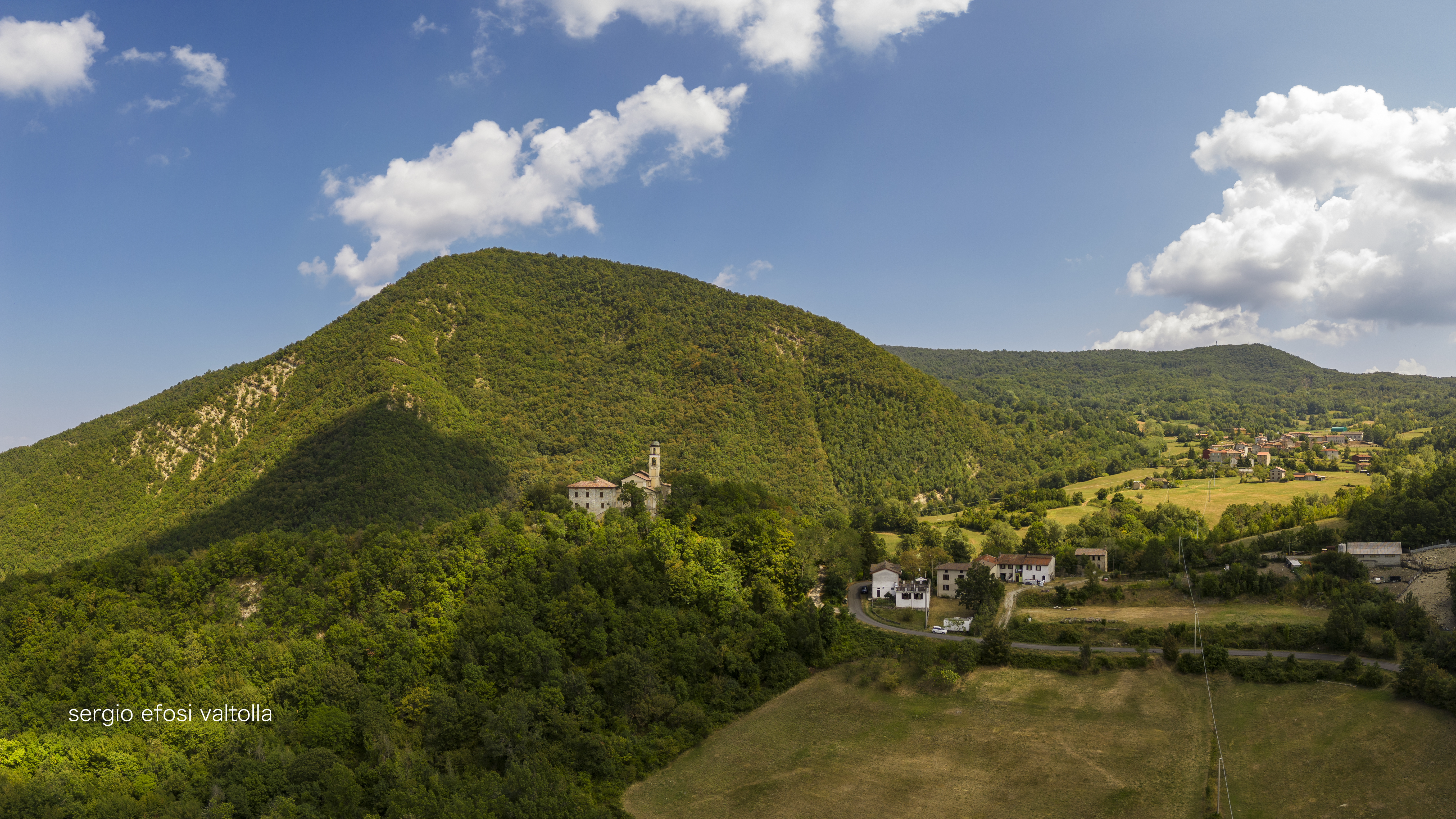 Riprendo Settesorelle, con la chiesa e una vista generale del principale centro abitato; un tempo, non troppi decenni fa, più difficile da raggiungere ma sempre genuino.