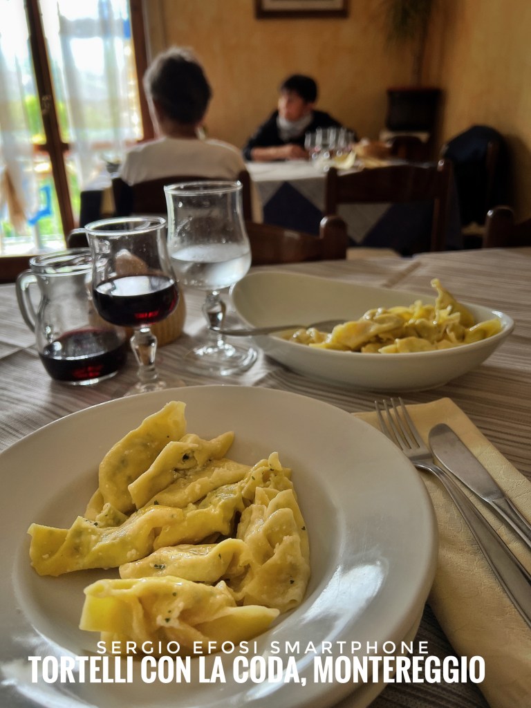 Entro nella trattoria verso le 13,30, sono a Montereggio, nell’Appennino di Piacenza dell’alta Val Nure, ho appena fatto una camminata e ho voglia di tortelli, quelli che piacciono a me con la coda.